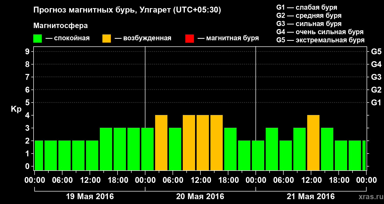 Прогноз магнитных бурь в Улгарете на 19 мая 2016 года