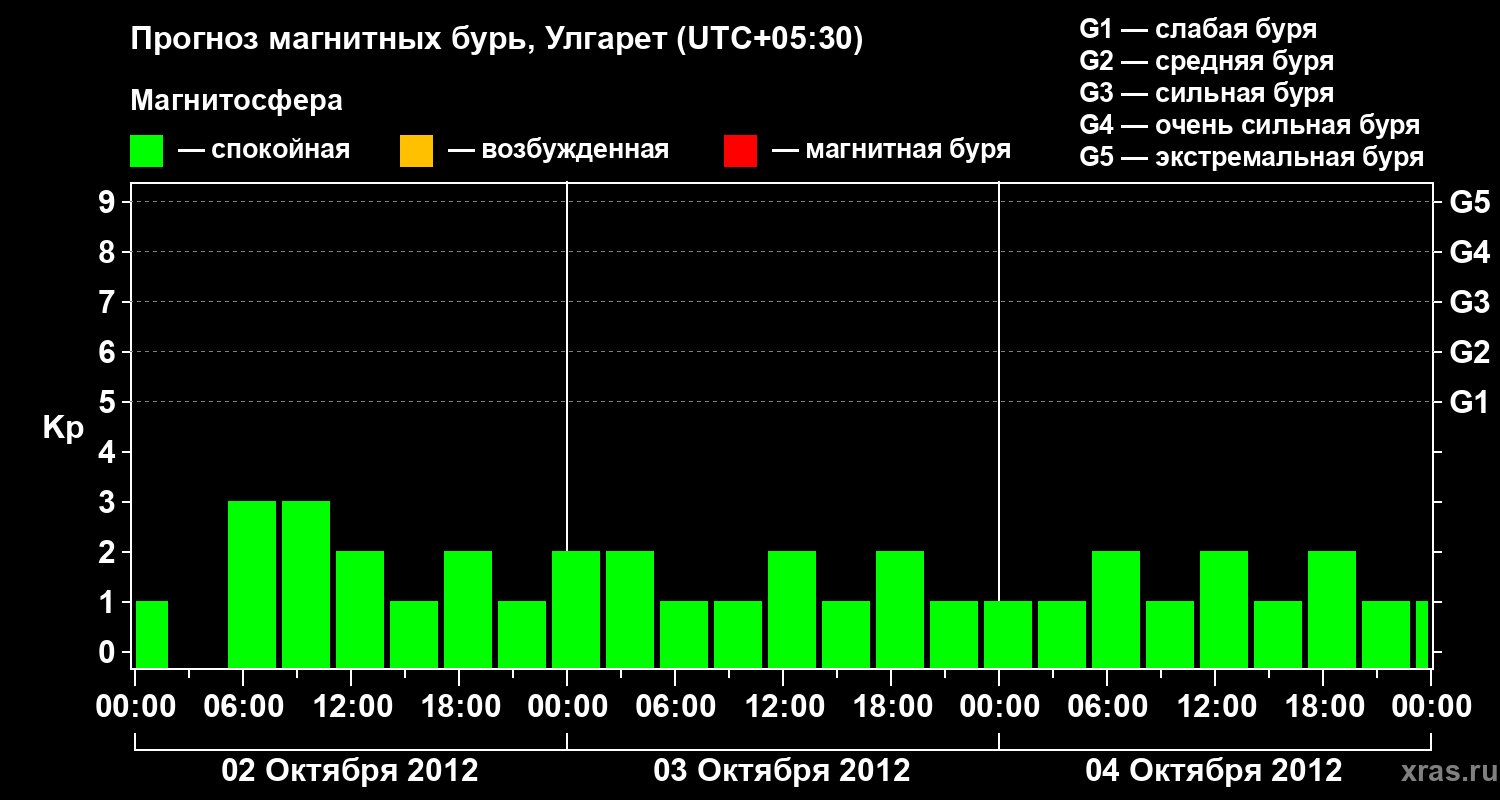 Прогноз магнитных бурь в Улгарете на 2 октября 2012 года