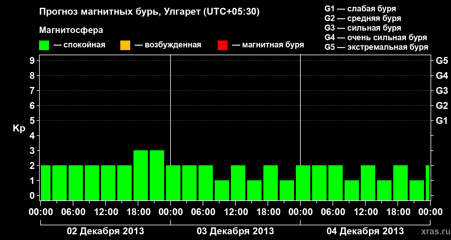 Прогноз магнитных бурь в Улгарете на 2 декабря 2013 года