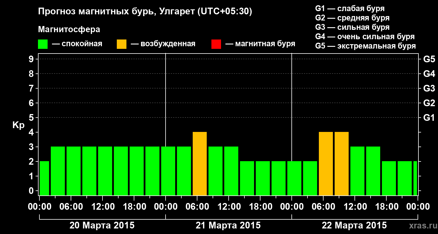 Прогноз магнитных бурь в Улгарете на 20 марта 2015 года