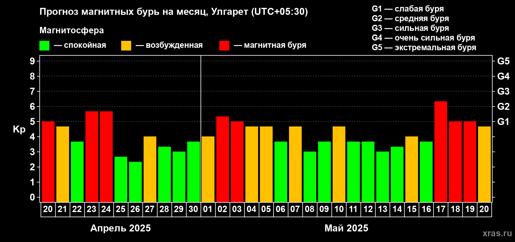 Прогноз магнитных бурь в Улгарете — 20 апреля 2025 года