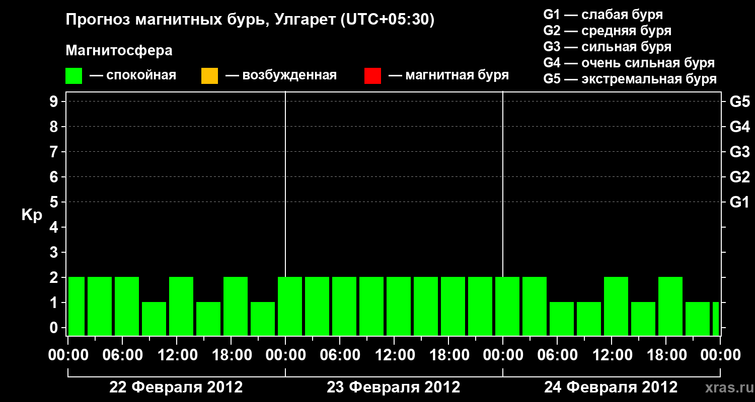 Прогноз магнитных бурь в Улгарете на 22 февраля 2012 года