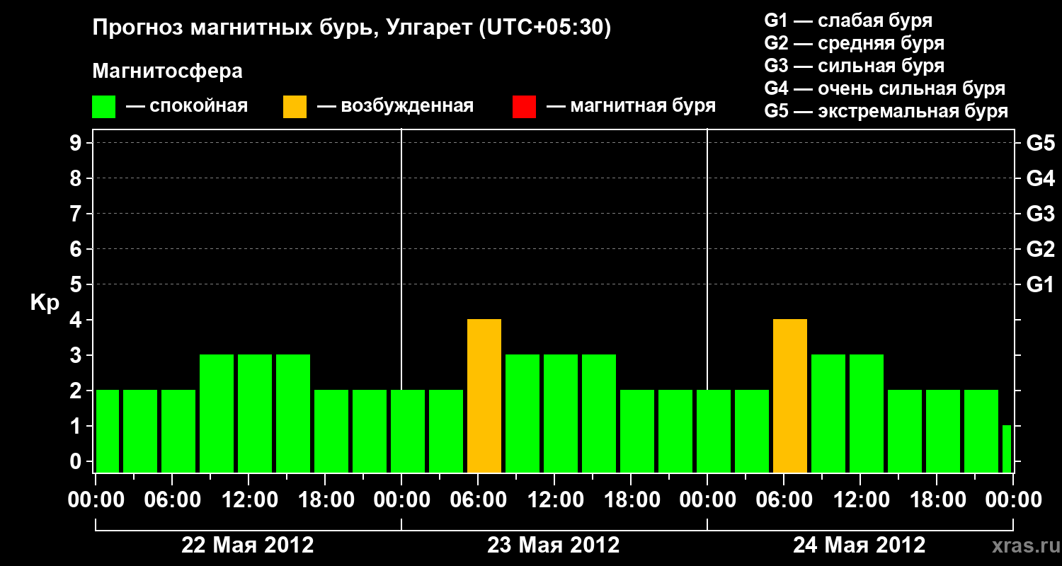 Прогноз магнитных бурь в Улгарете на 22 мая 2012 года