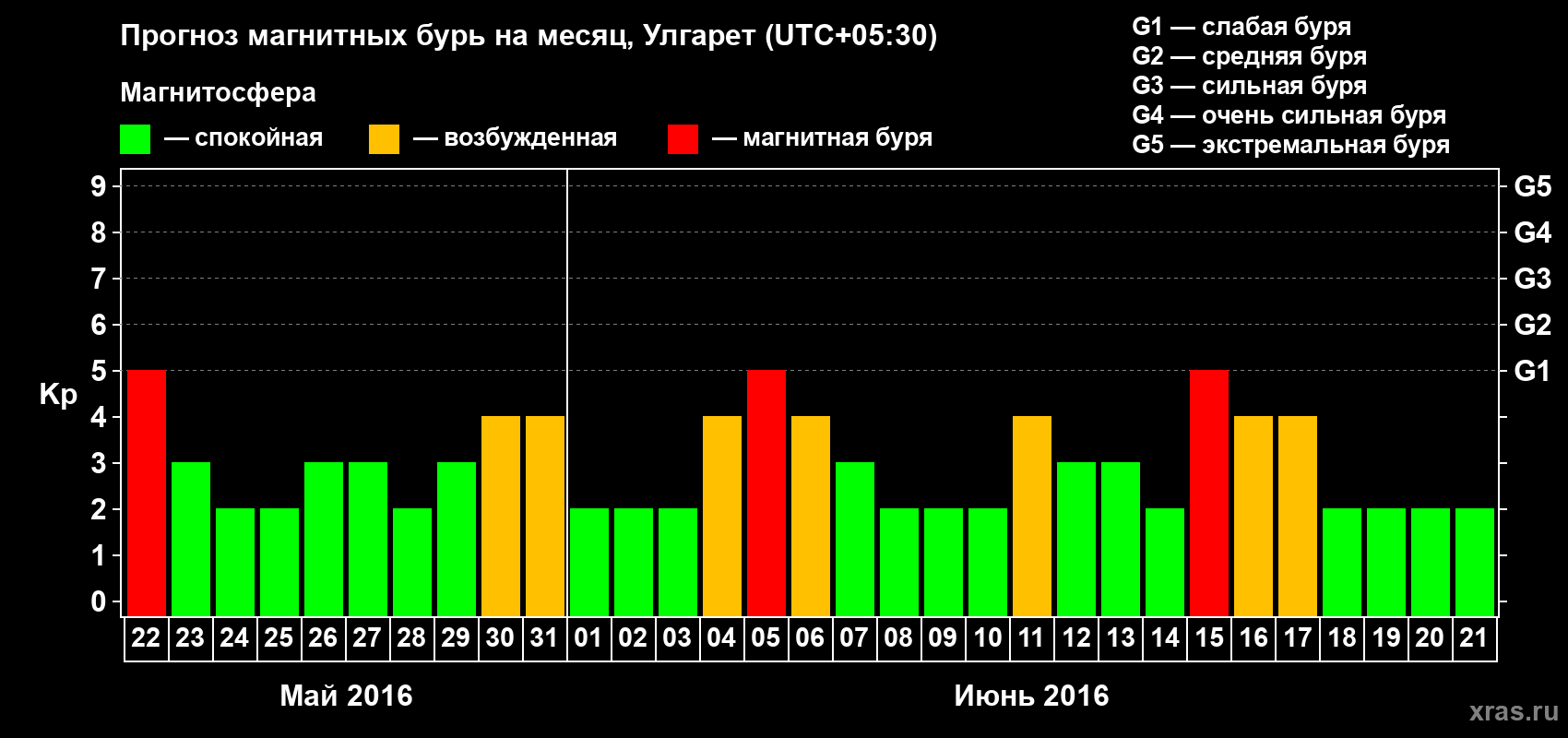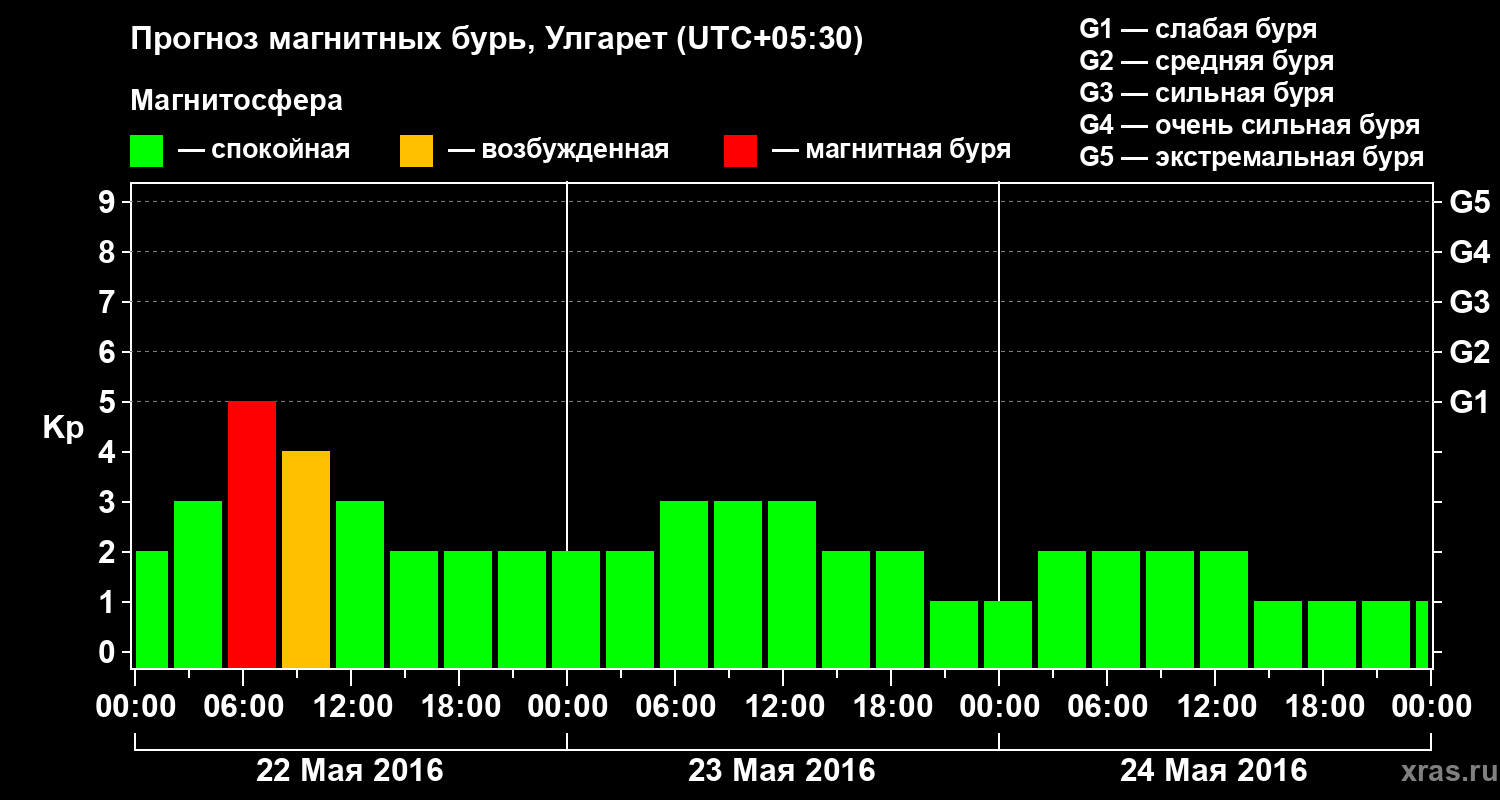 Прогноз магнитных бурь в Улгарете на 22 мая 2016 года