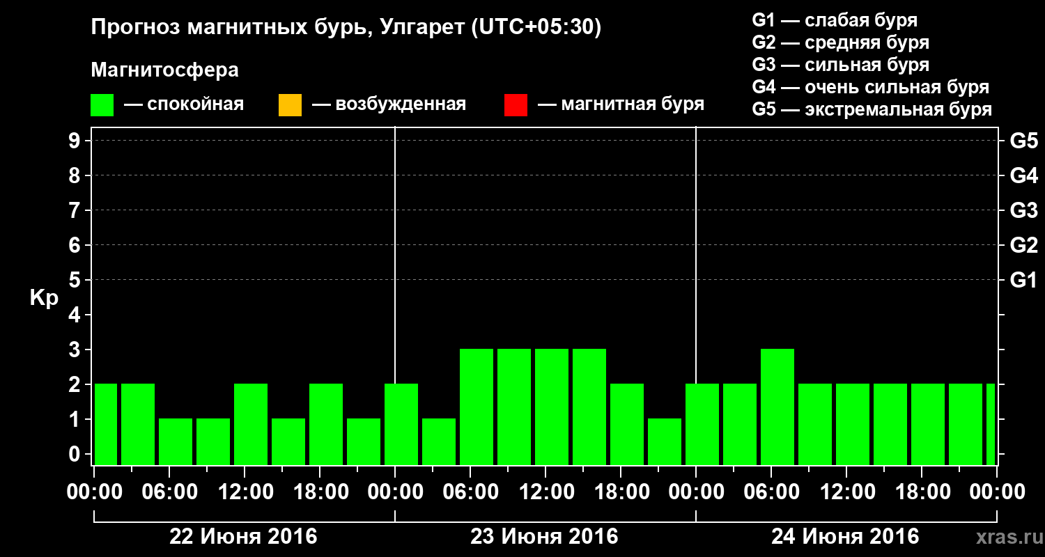 Прогноз магнитных бурь в Улгарете на 22 июня 2016 года