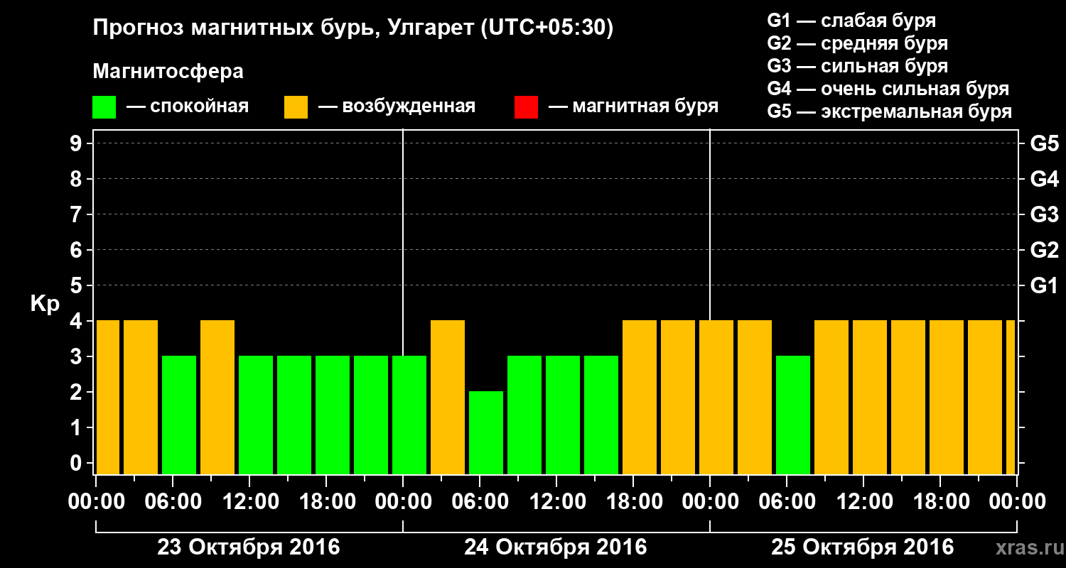 Прогноз магнитных бурь в Улгарете на 23 октября 2016 года