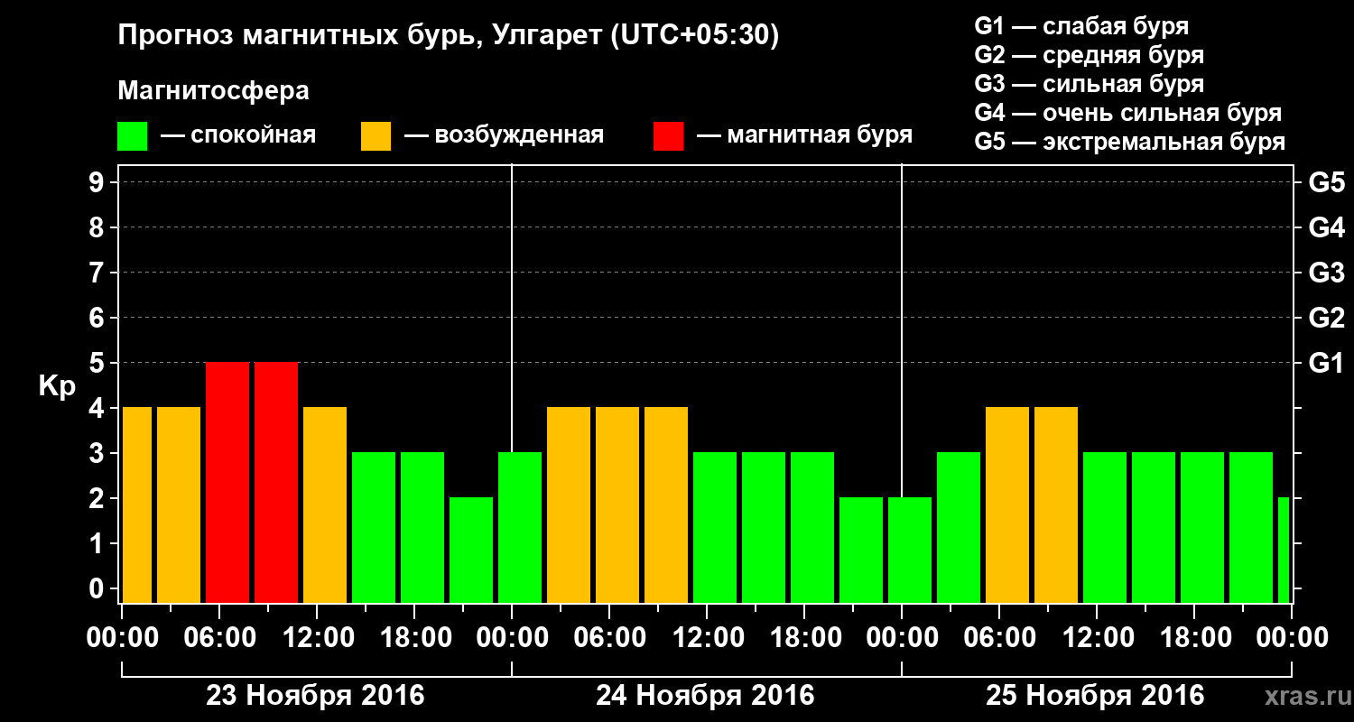 Прогноз магнитных бурь в Улгарете — 23 ноября 2016 года