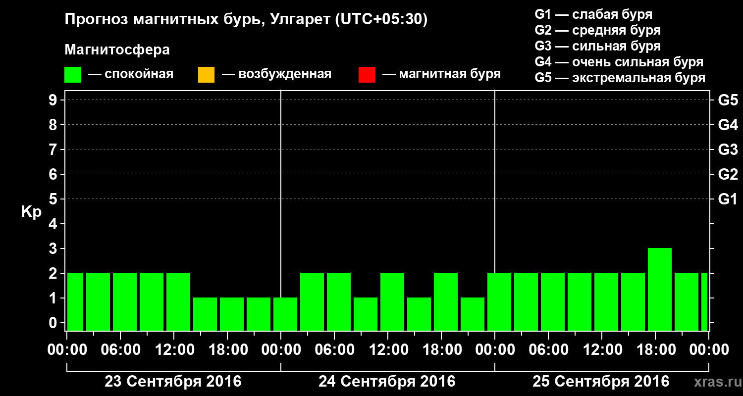 Прогноз магнитных бурь в Улгарете на 23 сентября 2016 года