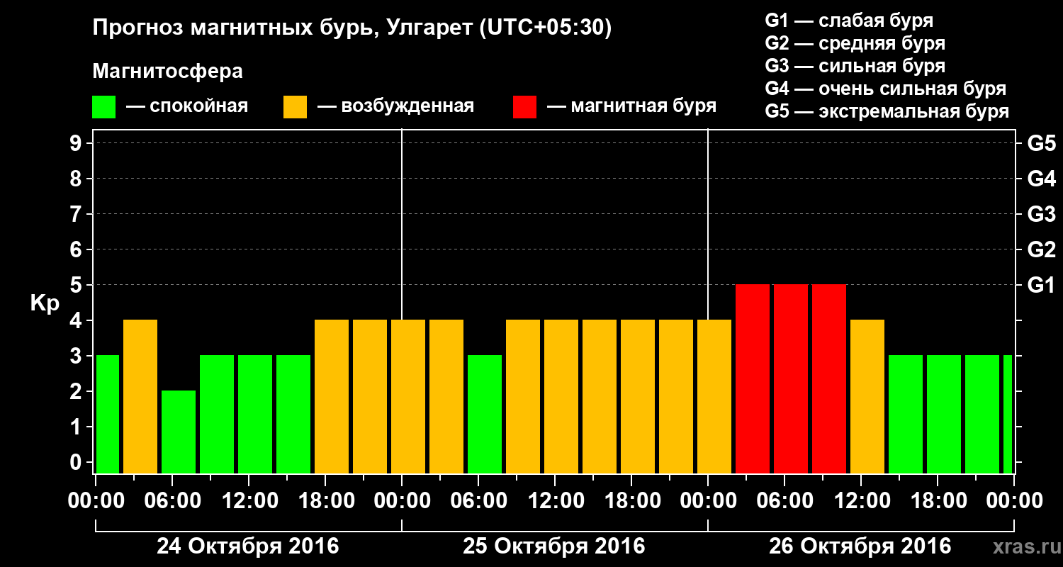 Прогноз магнитных бурь в Улгарете на 24 октября 2016 года