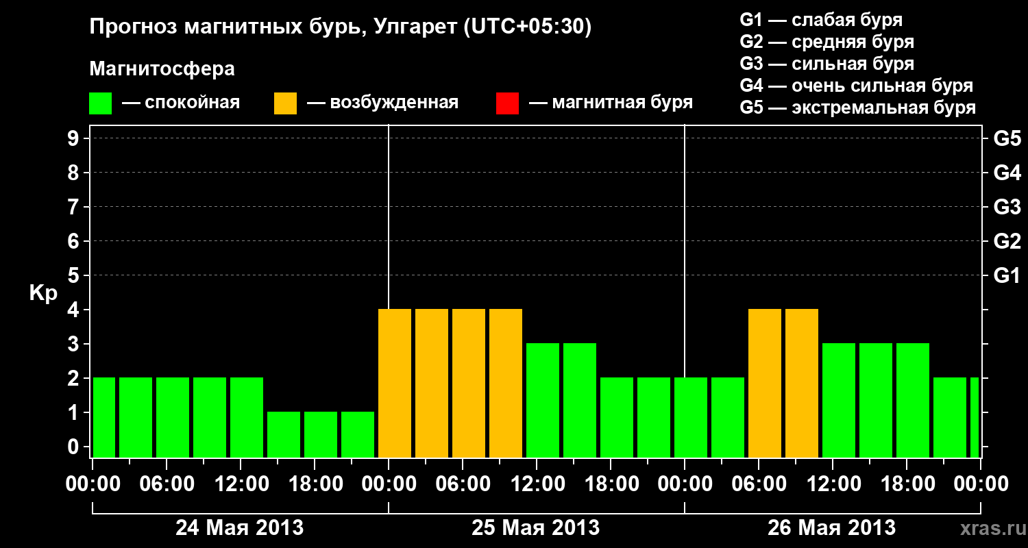 Прогноз магнитных бурь в Улгарете — 24 мая 2013 года
