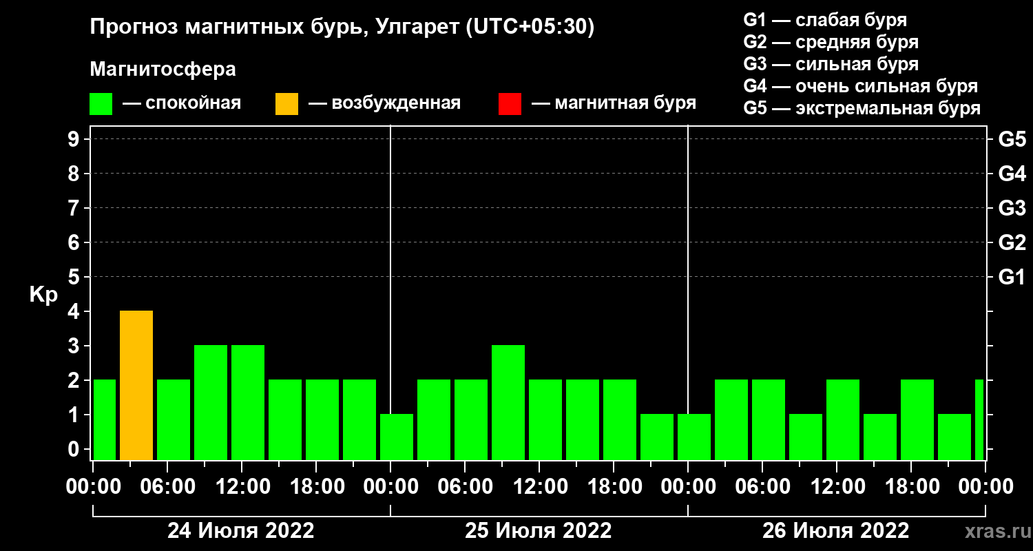 Прогноз магнитных бурь в Улгарете — 24 июля 2022 года