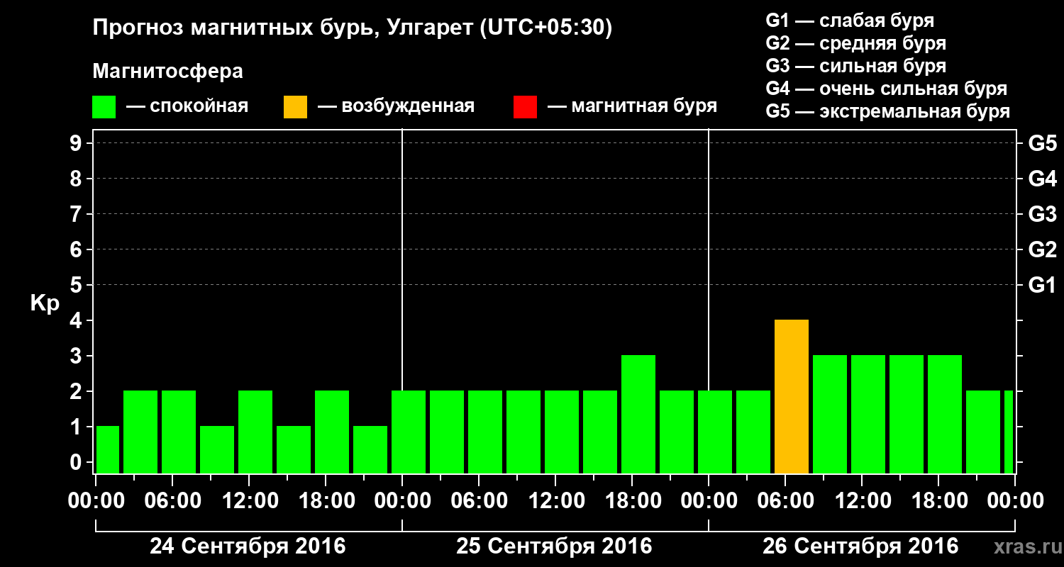 Прогноз магнитных бурь в Улгарете на 24 сентября 2016 года