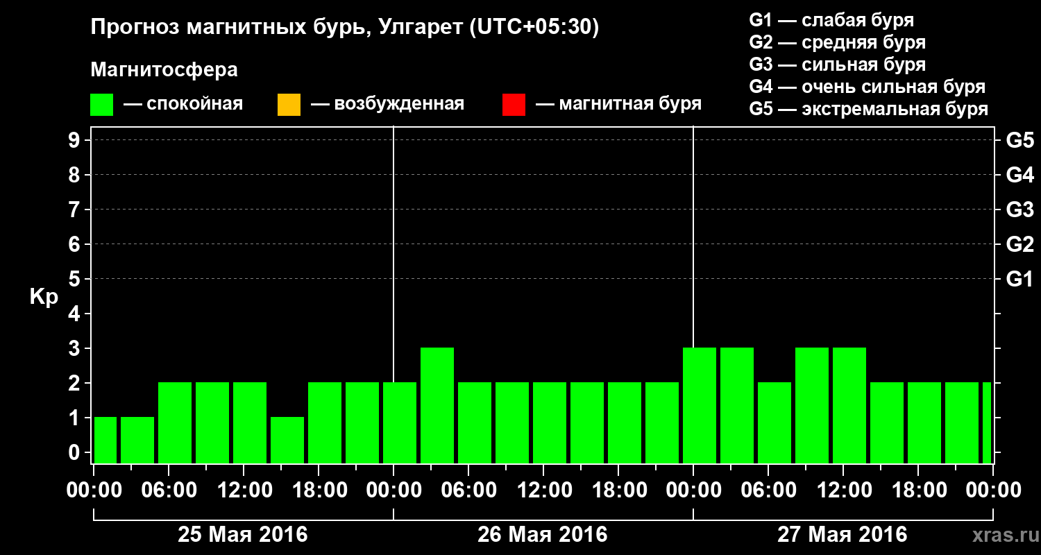 Прогноз магнитных бурь в Улгарете на 25 мая 2016 года