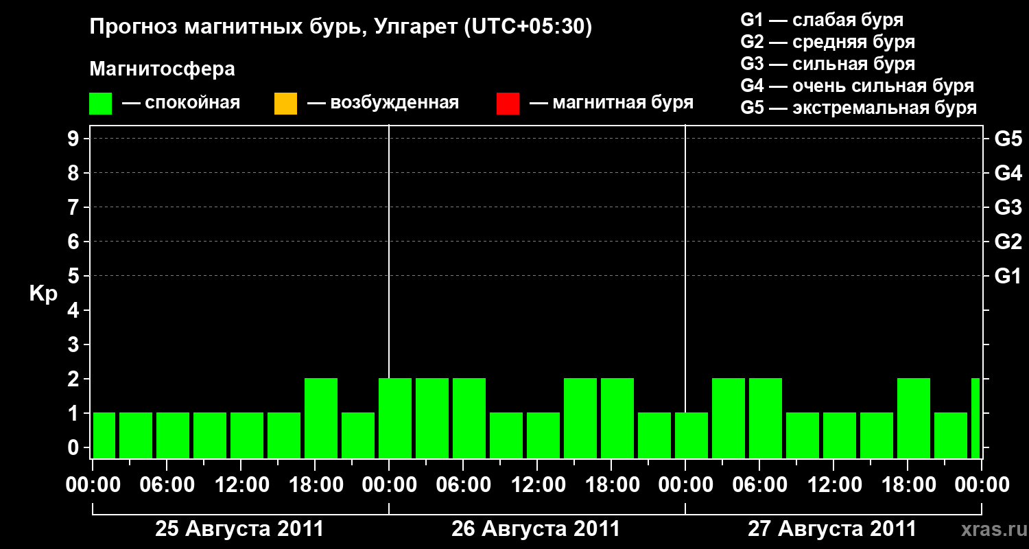 Прогноз магнитных бурь в Улгарете на 25 августа 2011 года