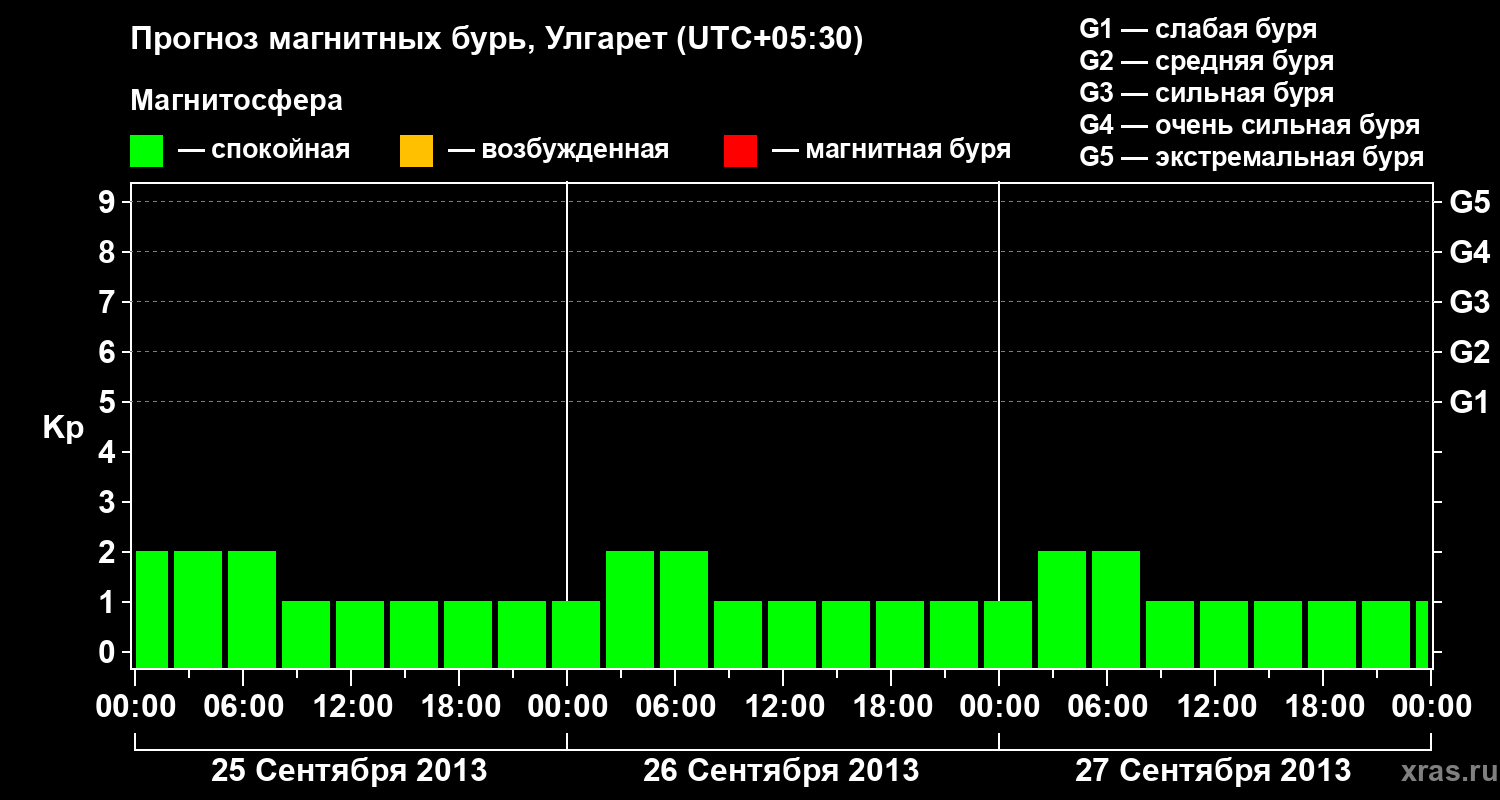 Прогноз магнитных бурь в Улгарете на 25 сентября 2013 года