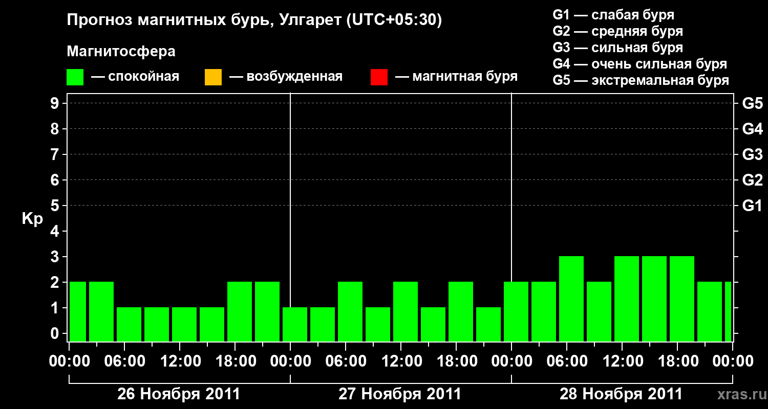 Прогноз магнитных бурь в Улгарете — 26 ноября 2011 года