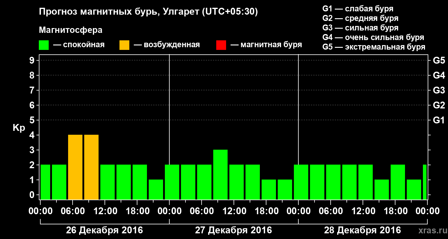 Прогноз магнитных бурь в Улгарете — 26 декабря 2016 года