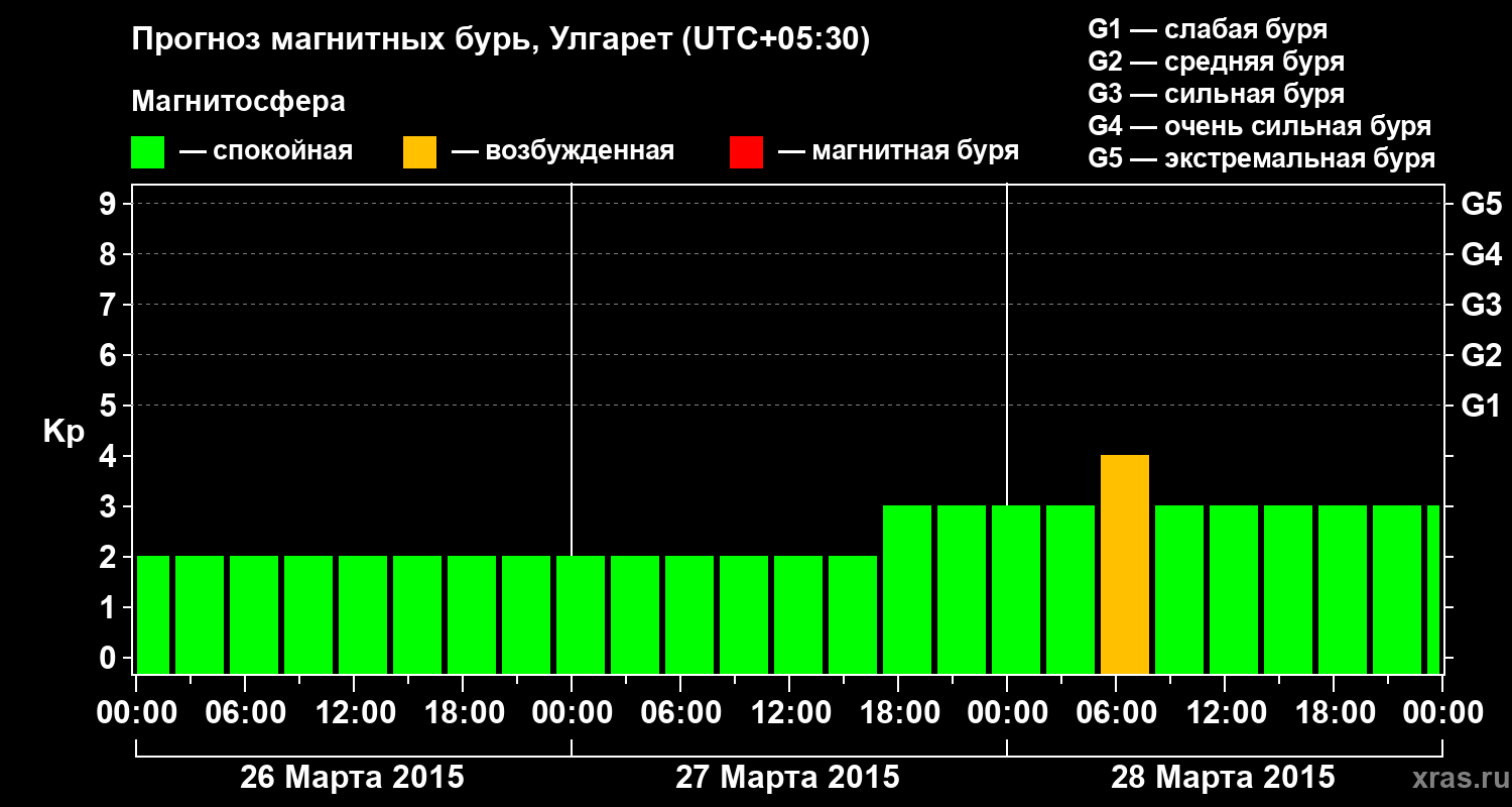 Прогноз магнитных бурь в Улгарете на 26 марта 2015 года