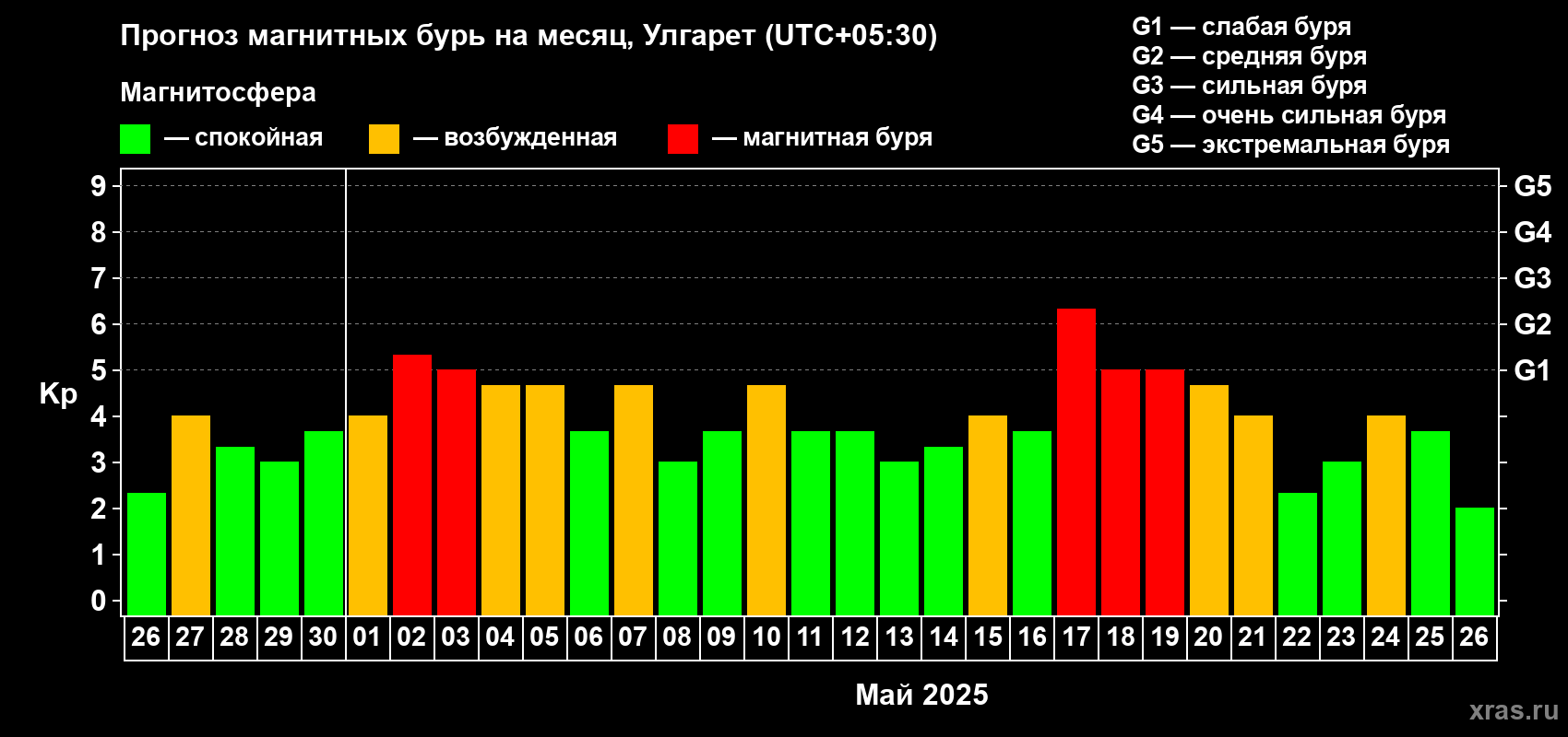 Прогноз магнитных бурь в Улгарете — 26 апреля 2025 года