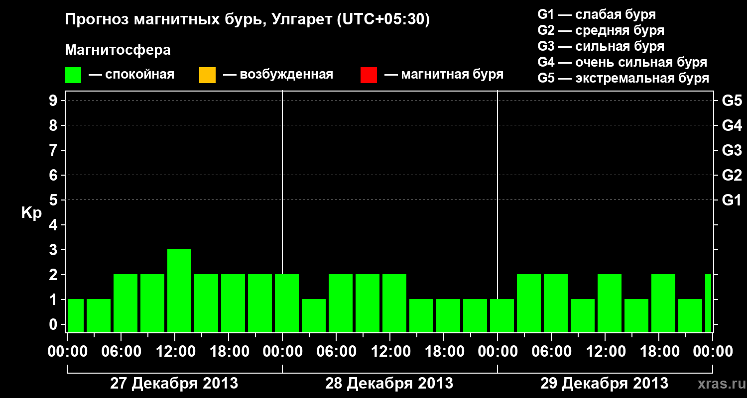 Прогноз магнитных бурь в Улгарете — 27 декабря 2013 года