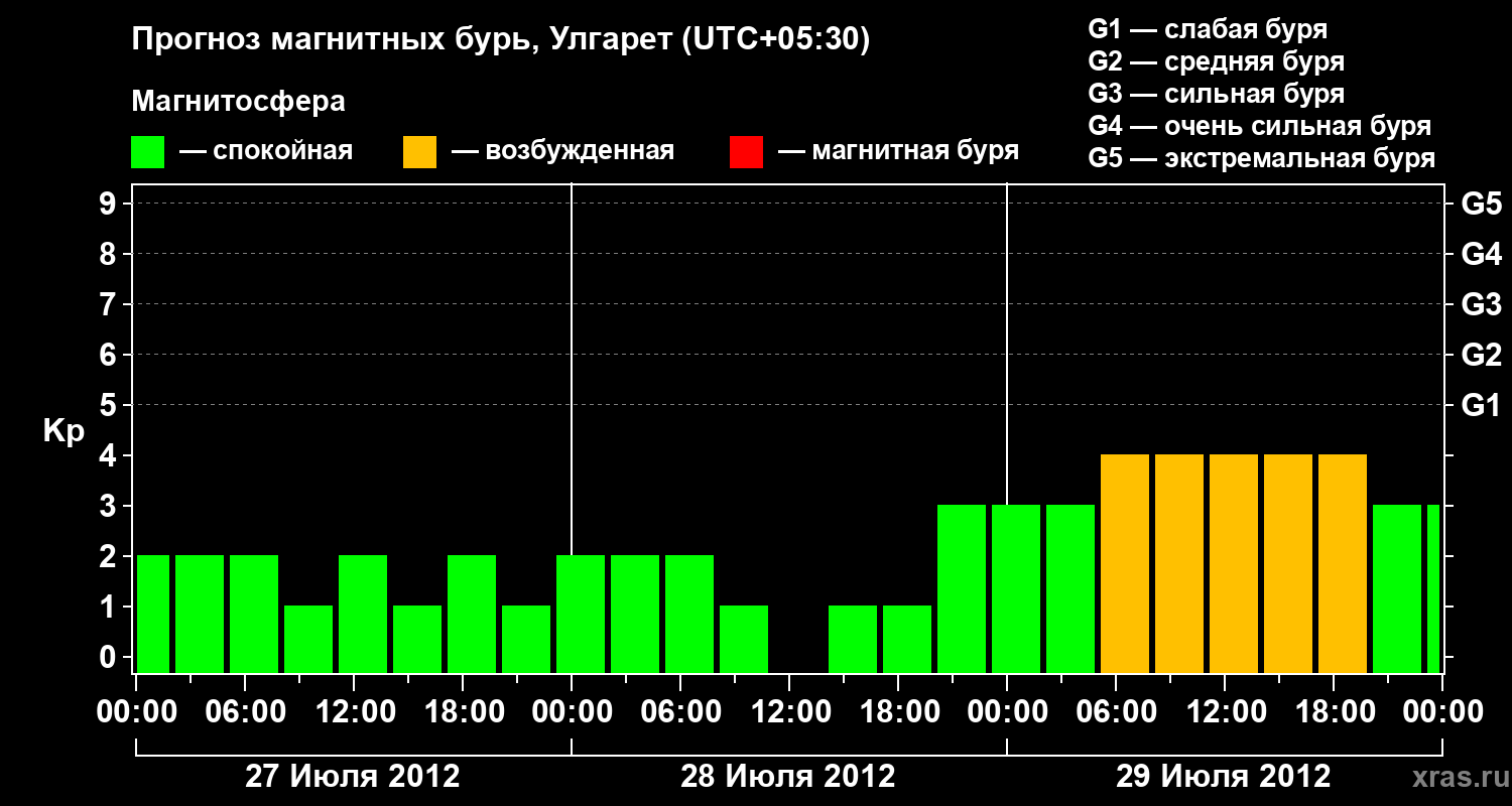Прогноз магнитных бурь в Улгарете — 27 июля 2012 года