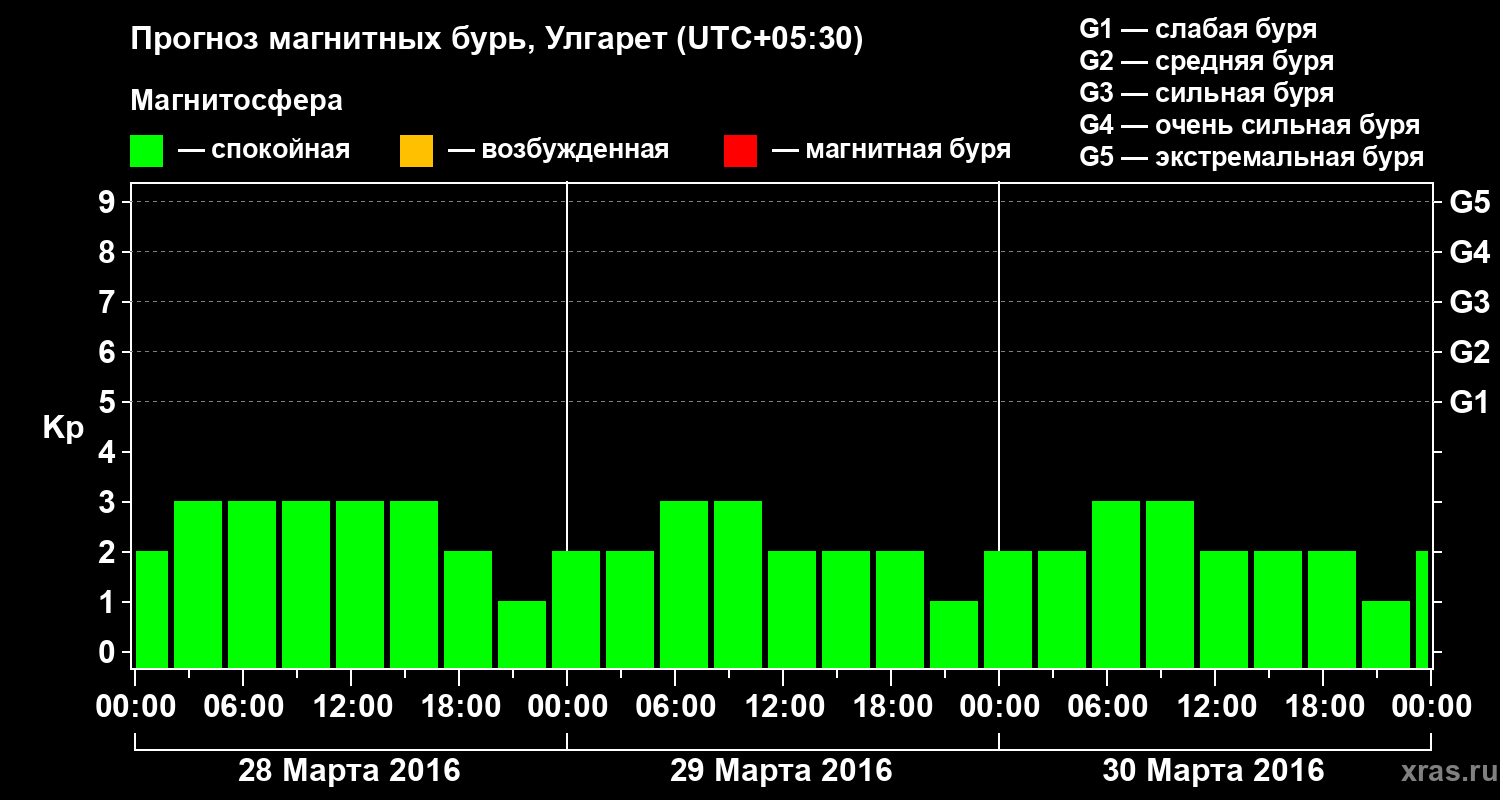 Прогноз магнитных бурь в Улгарете — 28 марта 2016 года
