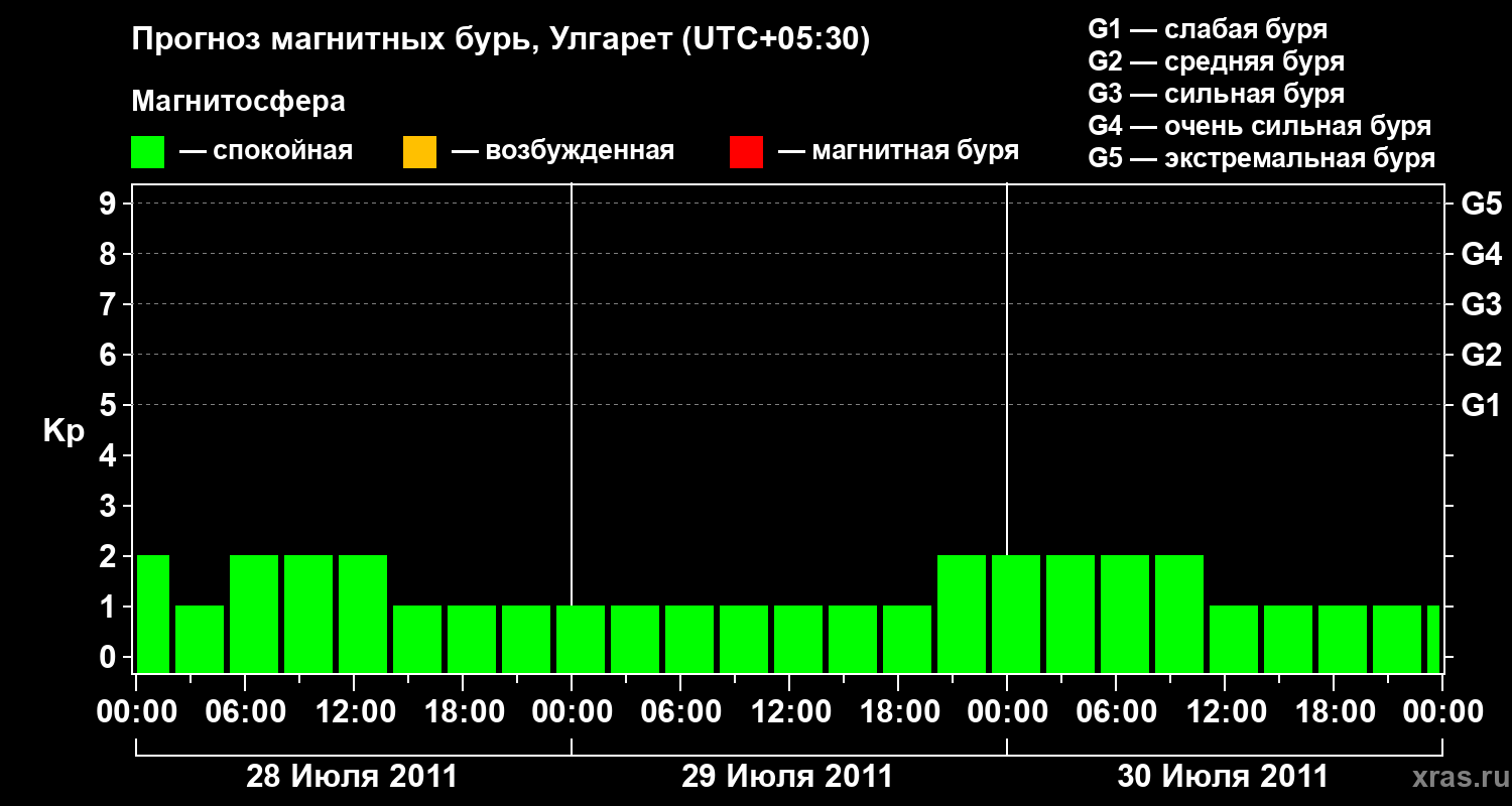 Прогноз магнитных бурь в Улгарете — 28 июля 2011 года