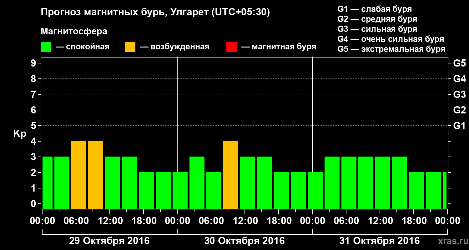 Прогноз магнитных бурь в Улгарете на 29 октября 2016 года