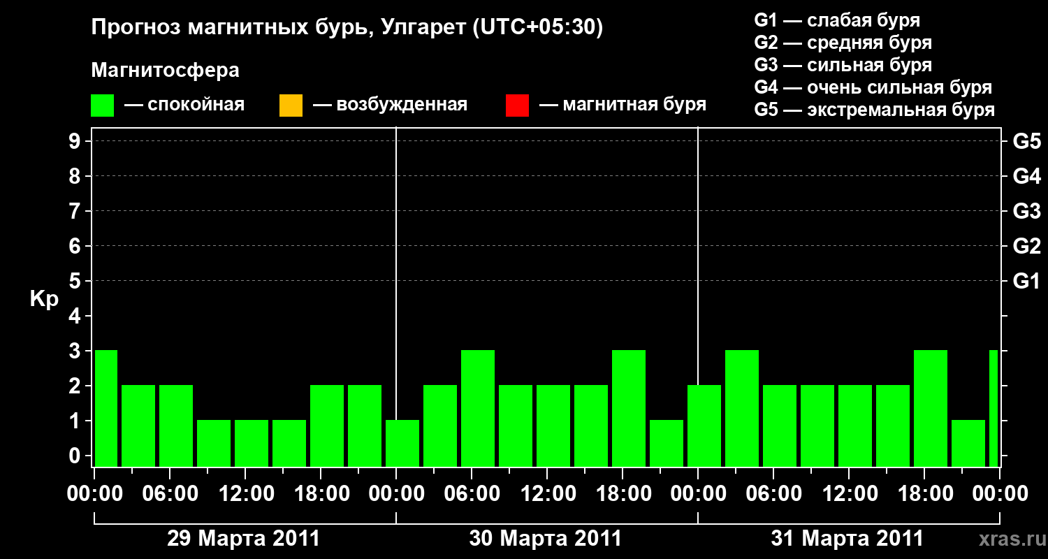 Прогноз магнитных бурь в Улгарете на 29 марта 2011 года