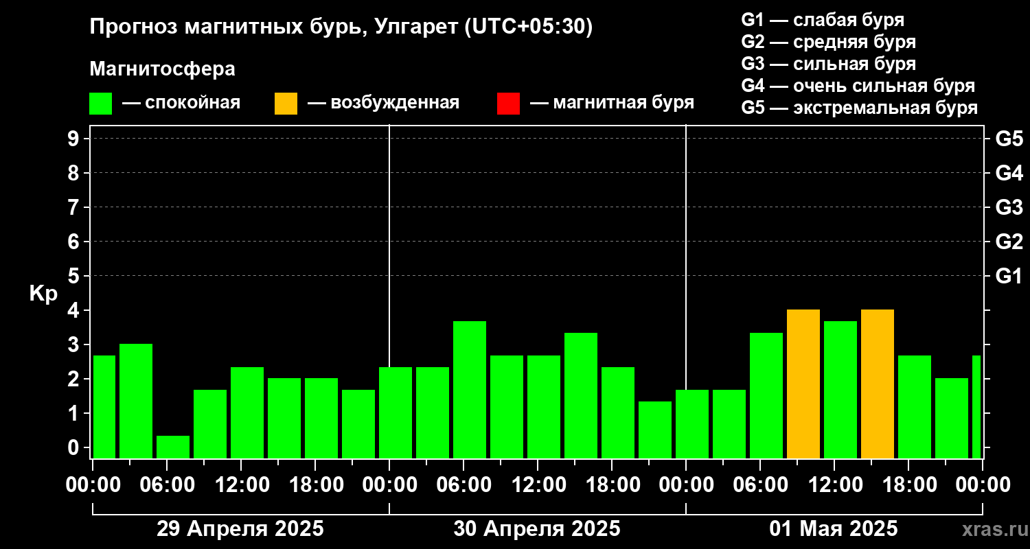 Прогноз магнитных бурь в Улгарете — 29 апреля 2025 года