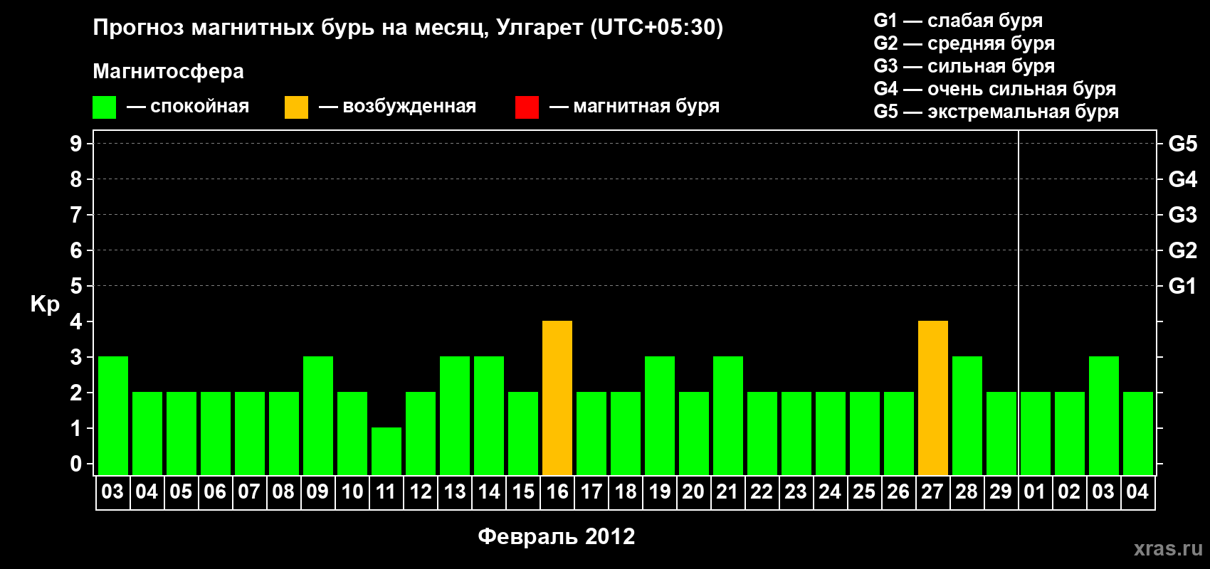 Прогноз магнитных бурь в Улгарете на 3 февраля 2012 года