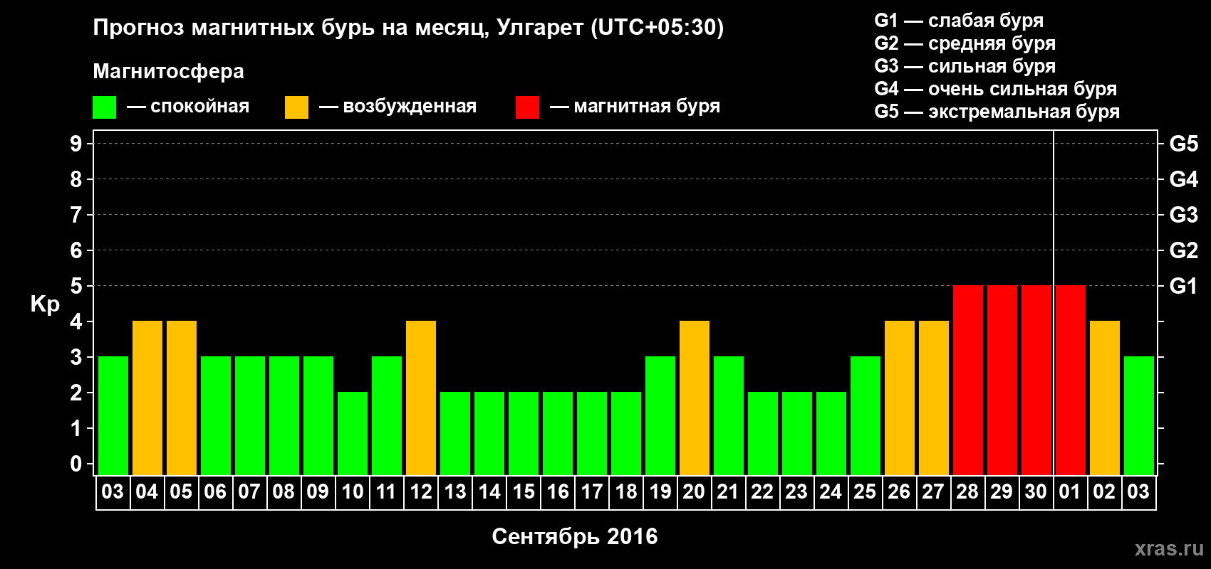 Прогноз магнитных бурь в Улгарете — 3 сентября 2016 года