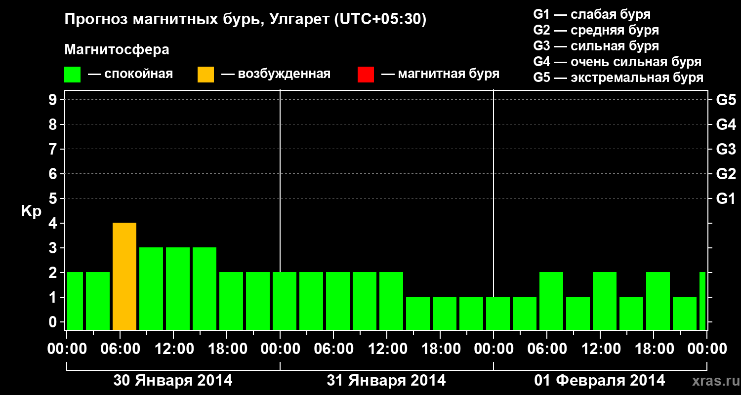 Прогноз магнитных бурь в Улгарете на 30 января 2014 года