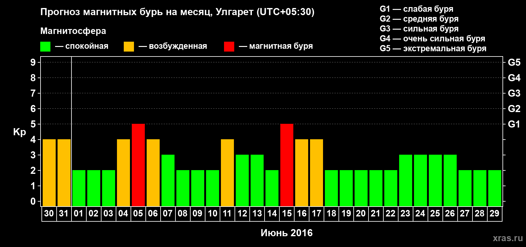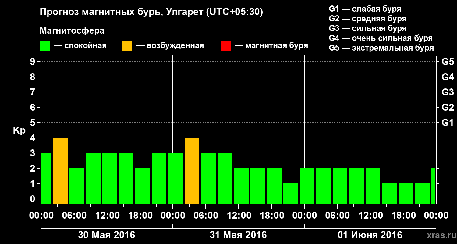 Прогноз магнитных бурь в Улгарете — 30 мая 2016 года