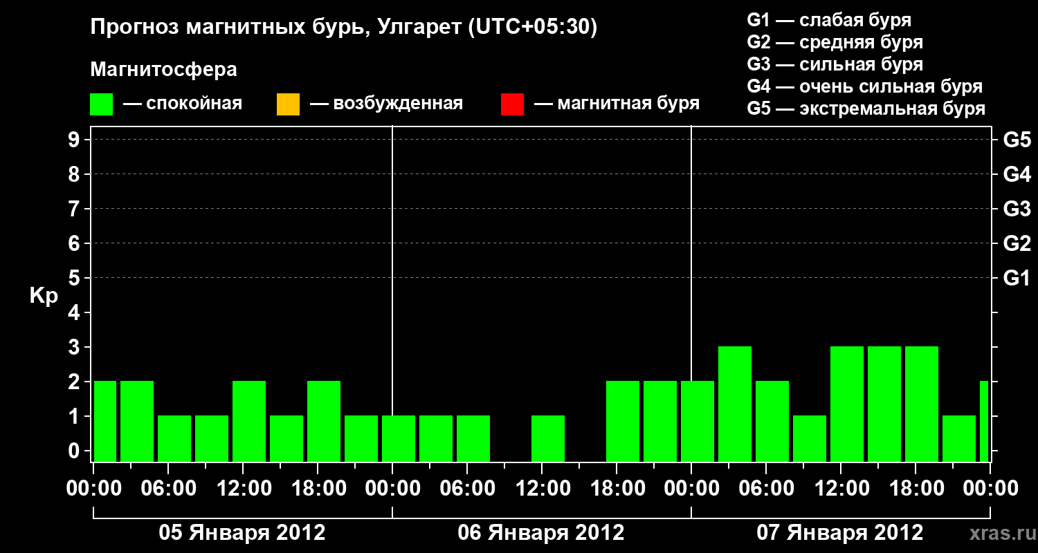 Прогноз магнитных бурь в Улгарете на 5 января 2012 года