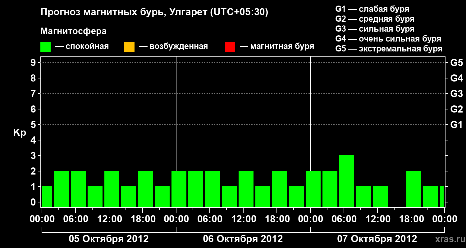 Прогноз магнитных бурь в Улгарете на 5 октября 2012 года
