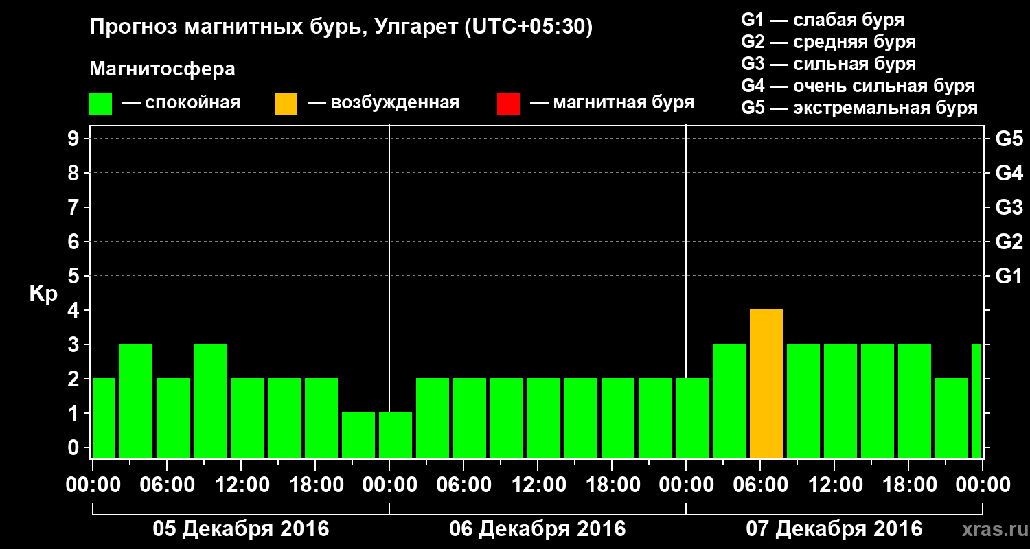 Прогноз магнитных бурь в Улгарете на 5 декабря 2016 года