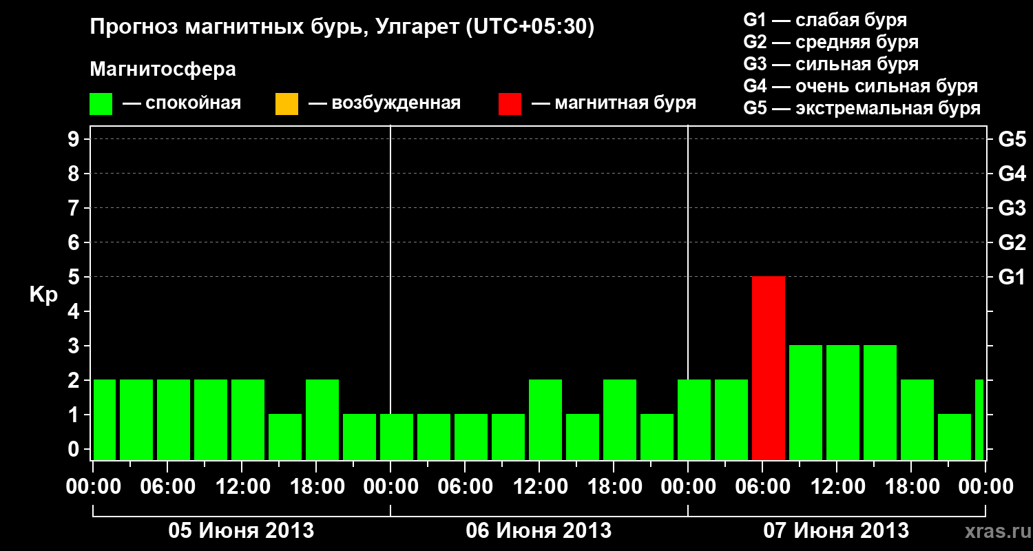 Прогноз магнитных бурь в Улгарете — 5 июня 2013 года