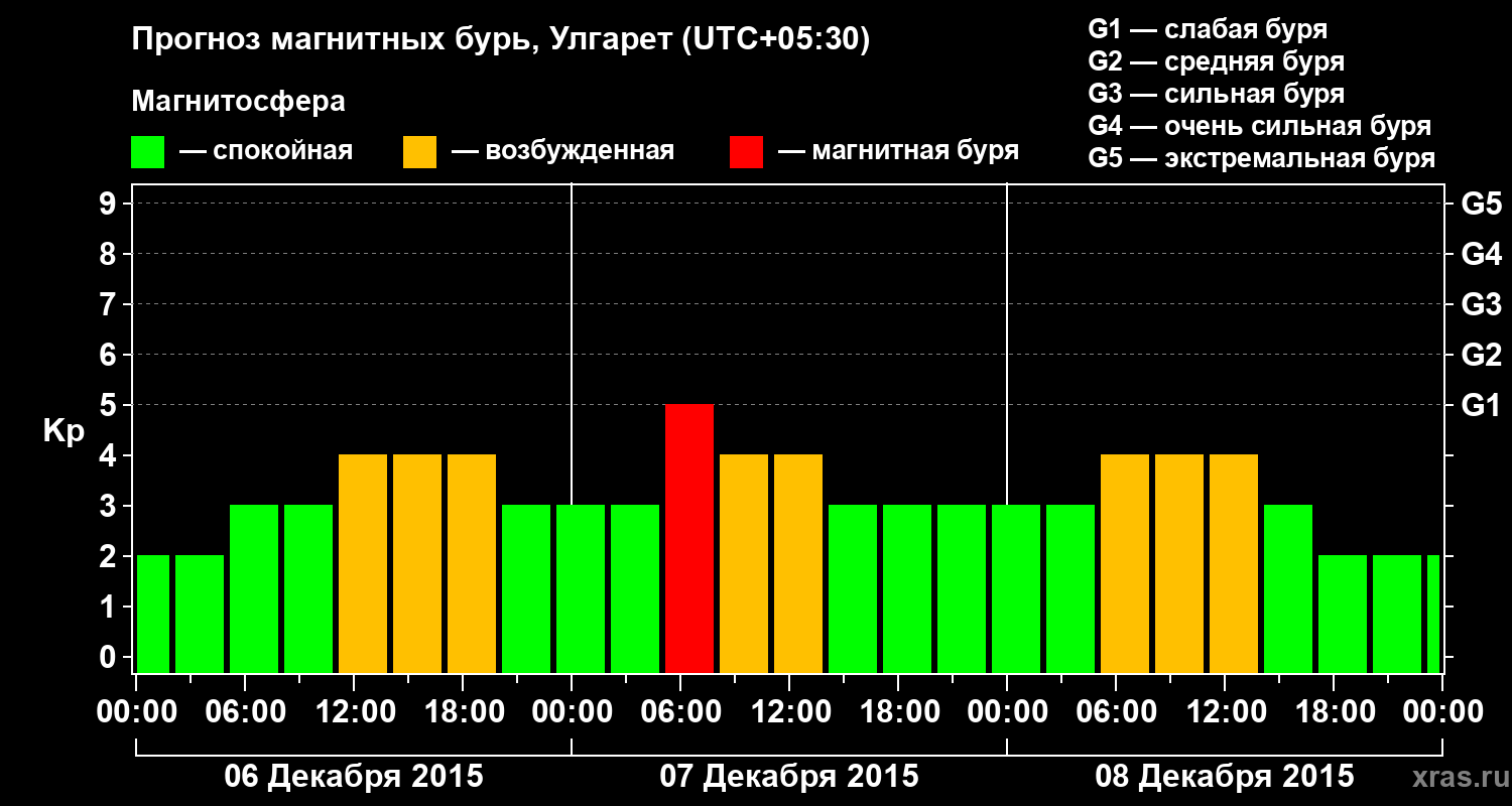 Прогноз магнитных бурь в Улгарете на 6 декабря 2015 года