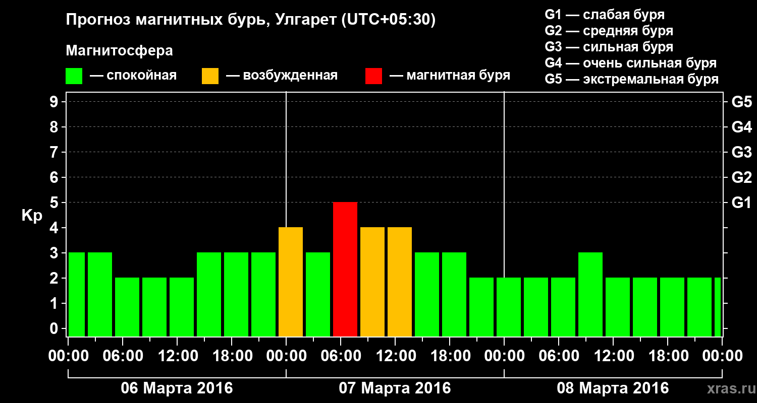 Прогноз магнитных бурь в Улгарете — 6 марта 2016 года