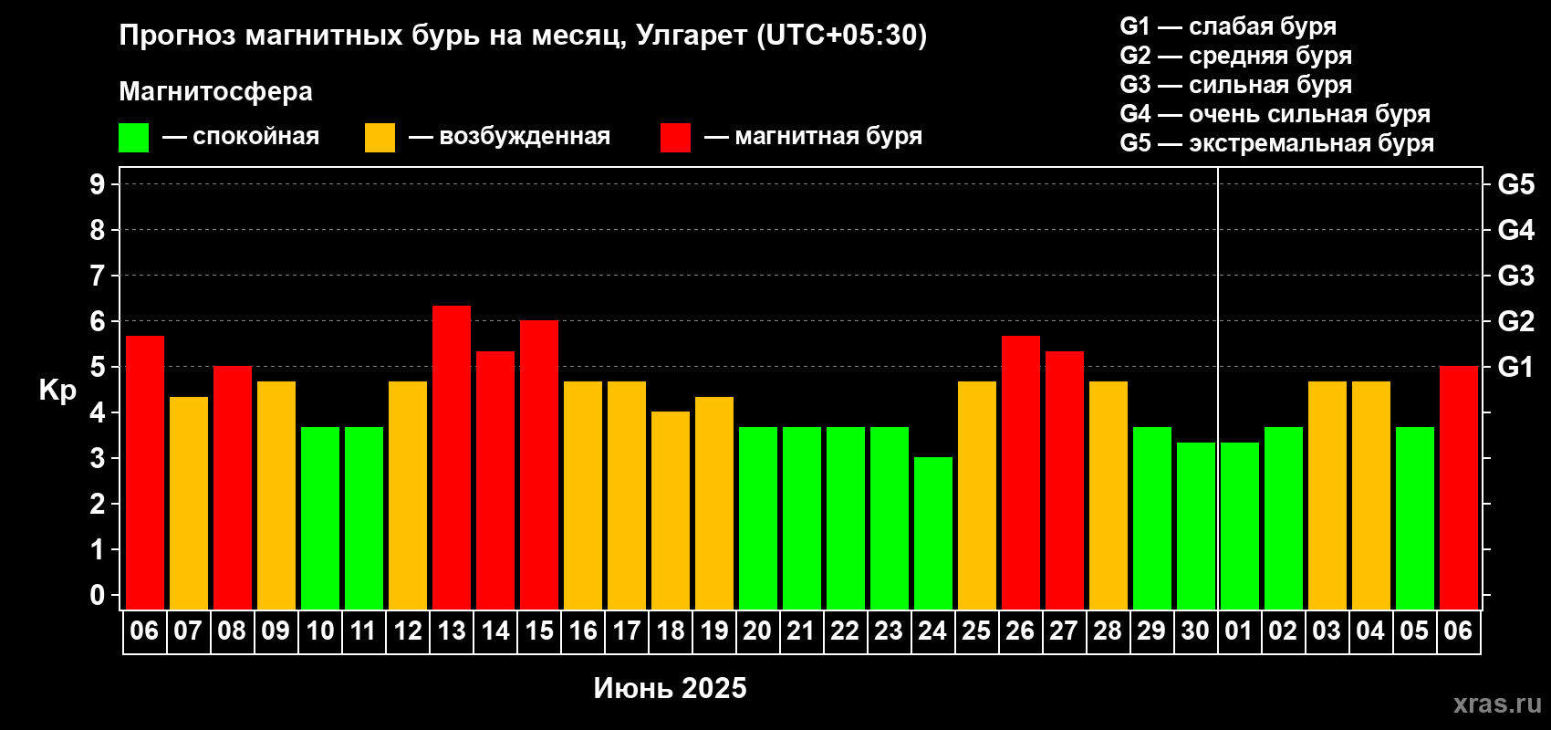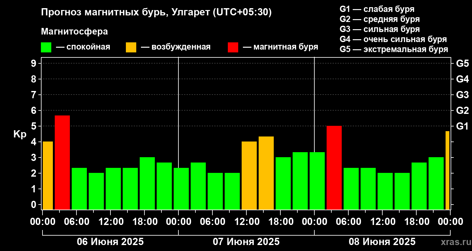 Прогноз магнитных бурь в Улгарете — 6 июня 2025 года