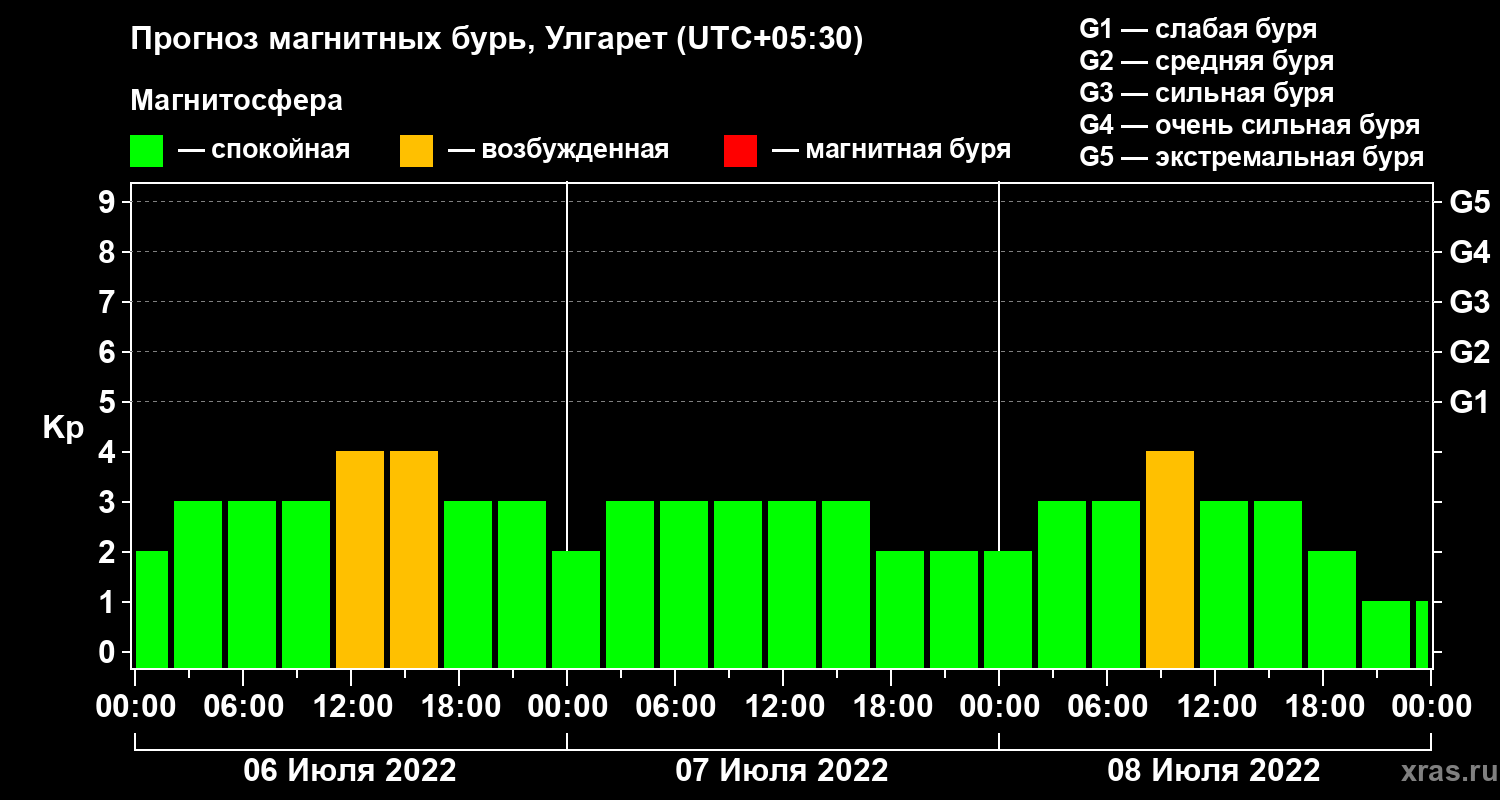 Прогноз магнитных бурь в Улгарете — 6 июля 2022 года