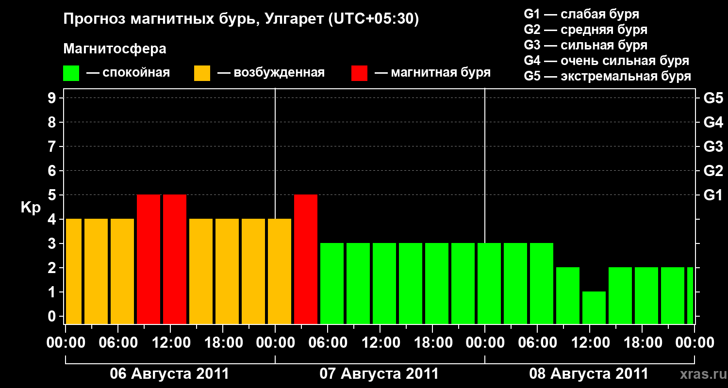 Прогноз магнитных бурь в Улгарете на 6 августа 2011 года