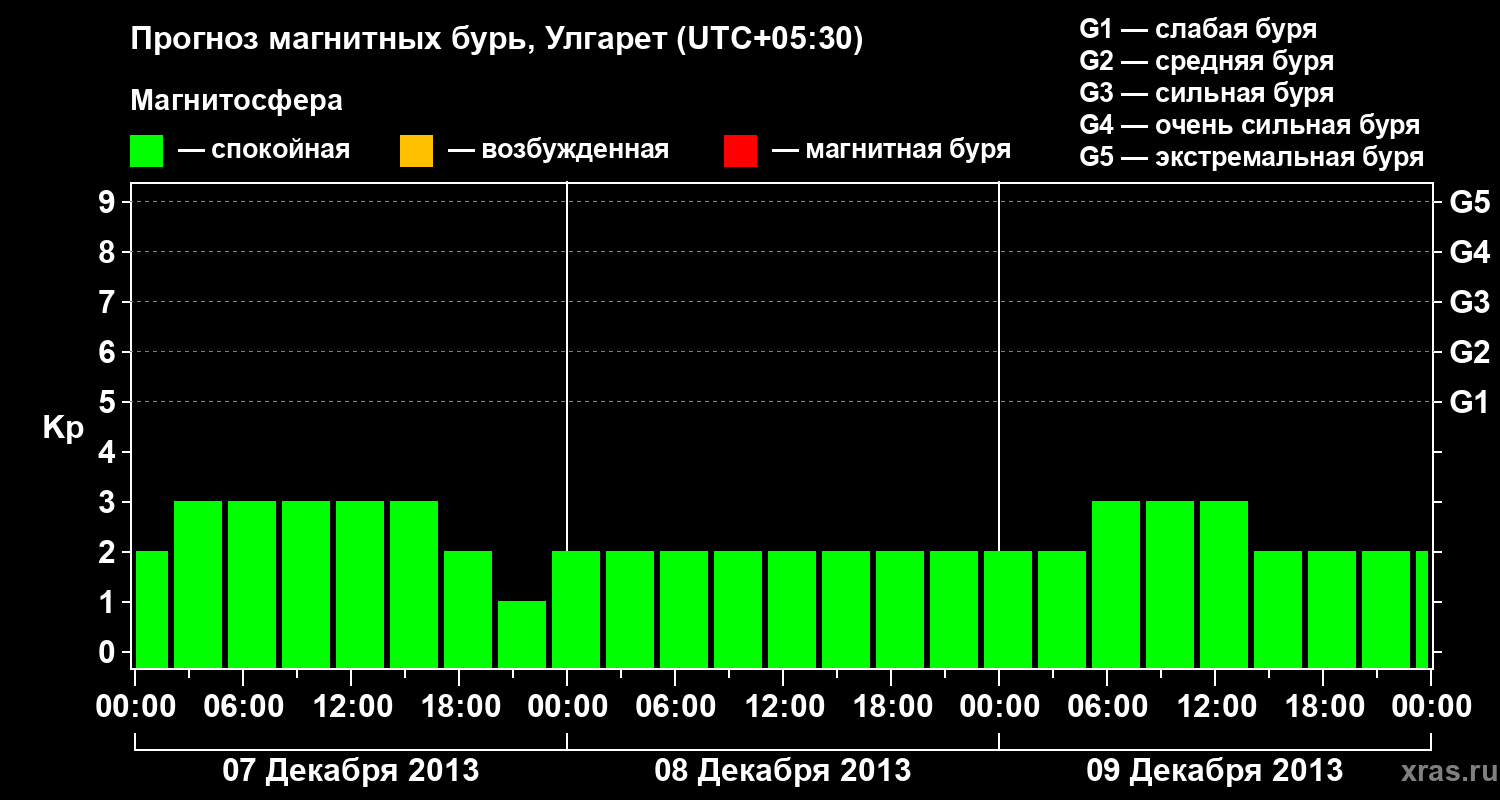 Прогноз магнитных бурь в Улгарете на 7 декабря 2013 года