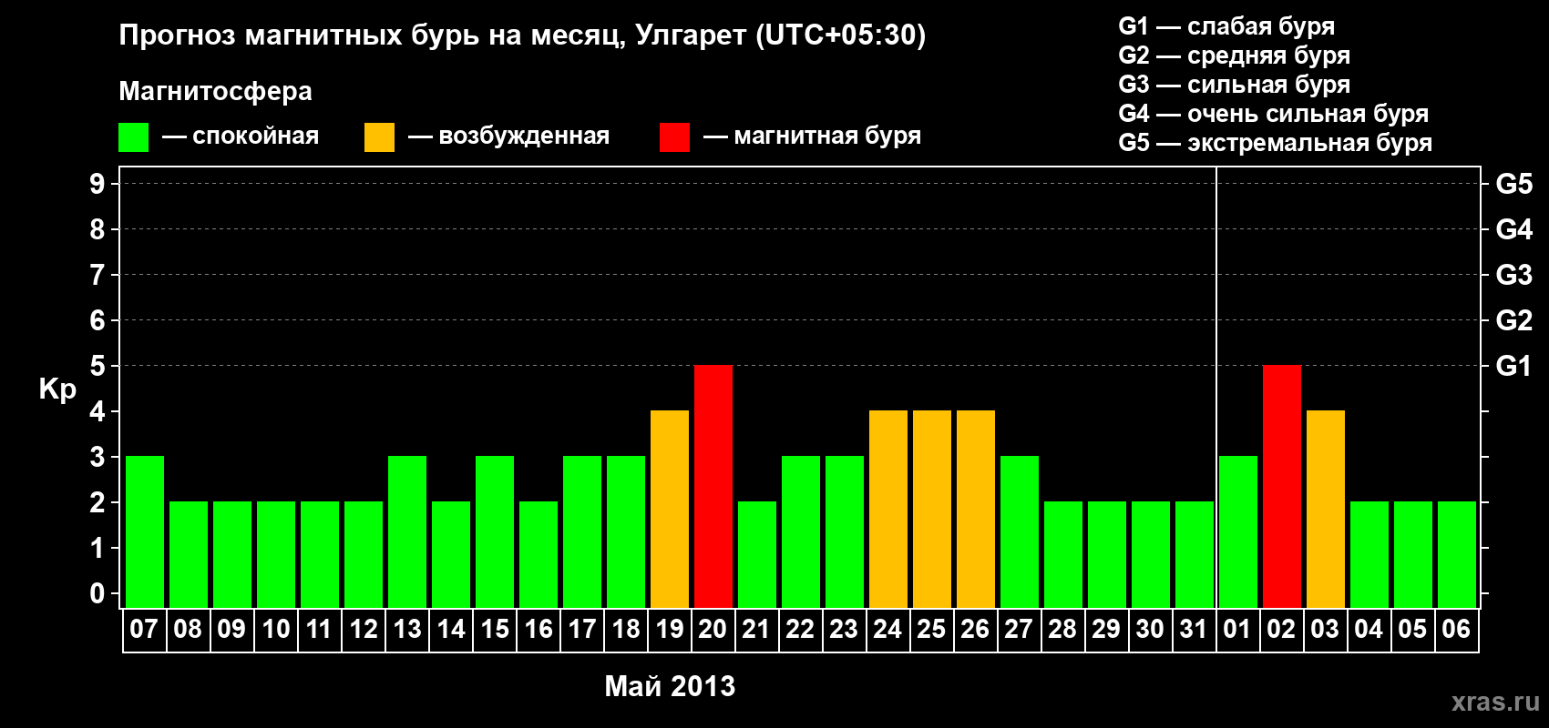 Прогноз магнитных бурь в Улгарете — 7 мая 2013 года