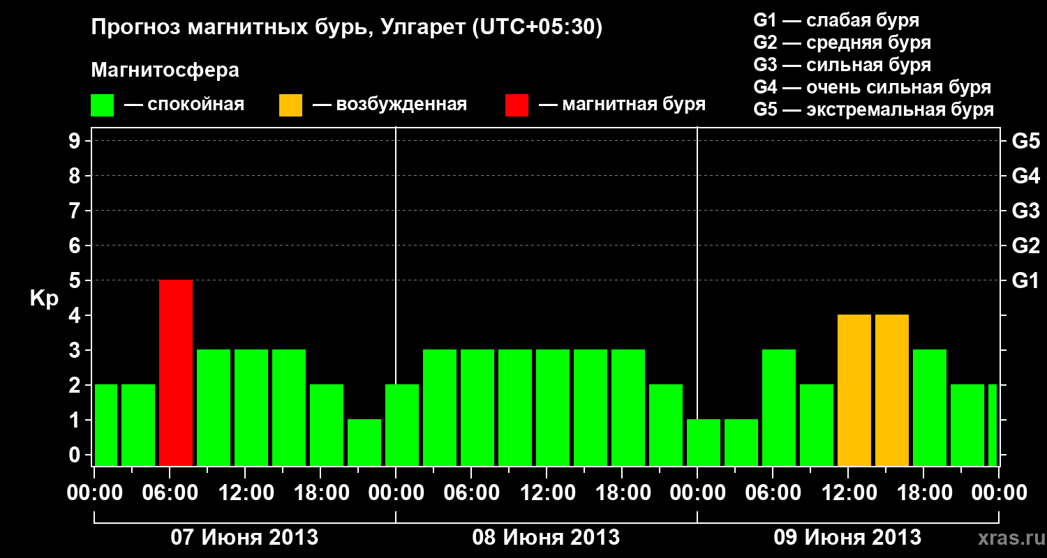 Прогноз магнитных бурь в Улгарете — 7 июня 2013 года