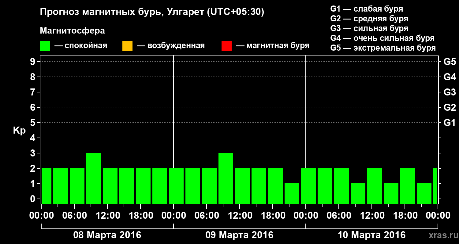 Прогноз магнитных бурь в Улгарете на 8 марта 2016 года