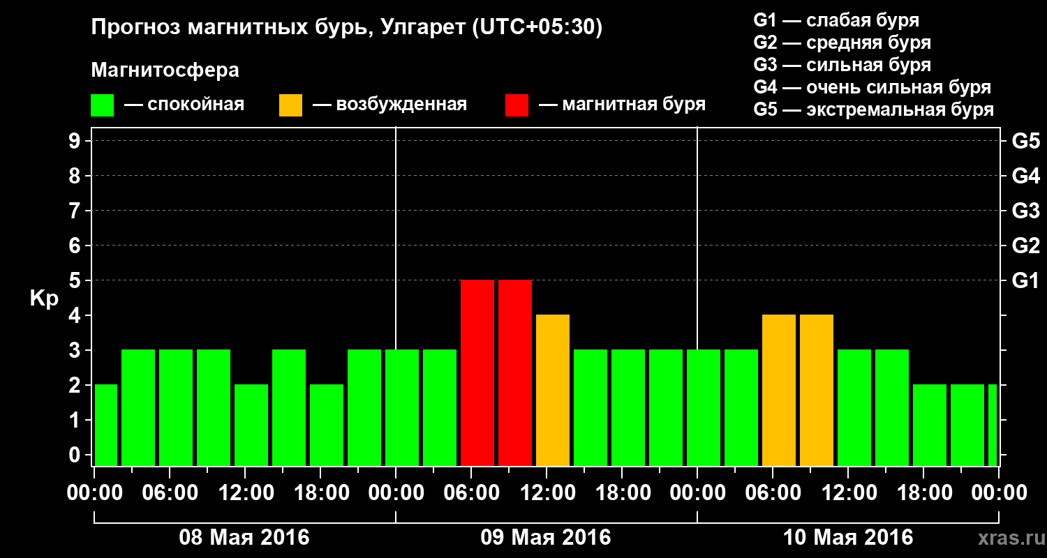 Прогноз магнитных бурь в Улгарете на 8 мая 2016 года