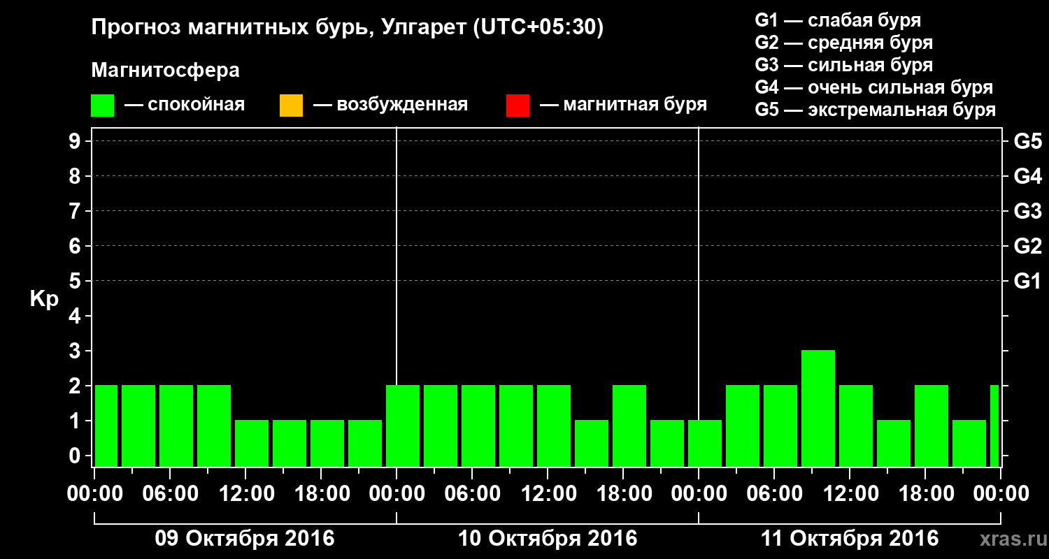 Прогноз магнитных бурь в Улгарете на 9 октября 2016 года