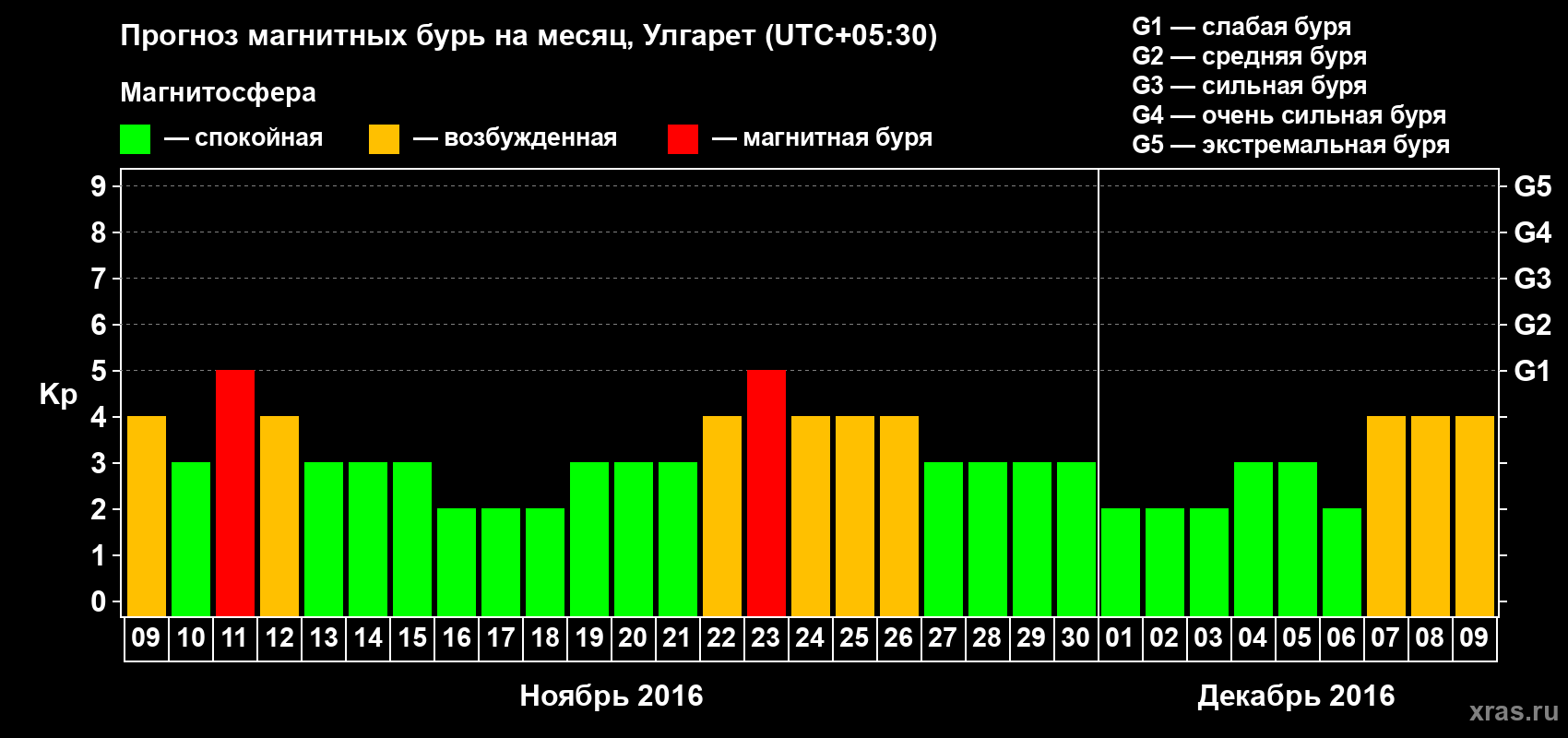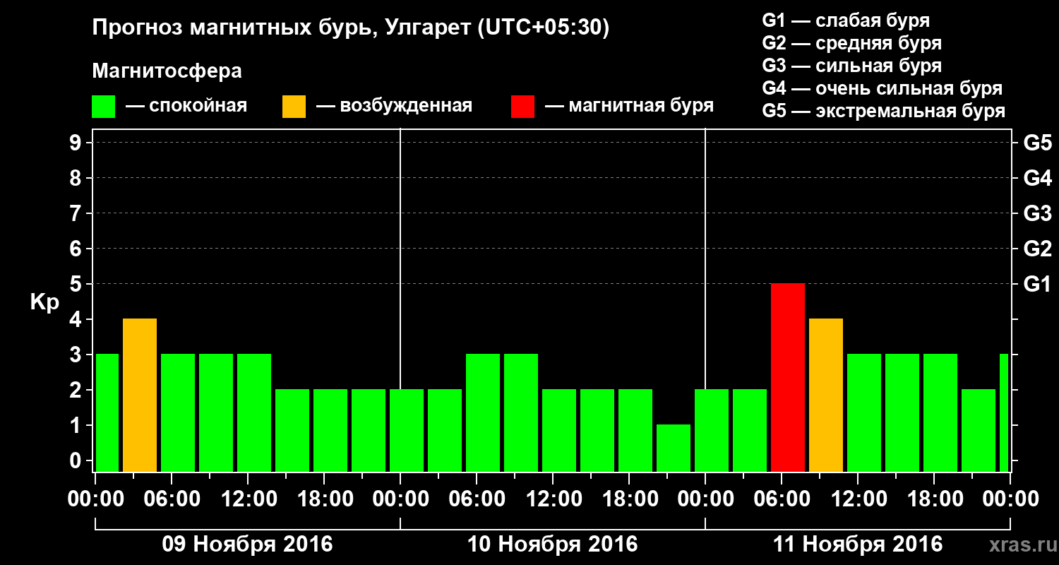 Прогноз магнитных бурь в Улгарете — 9 ноября 2016 года